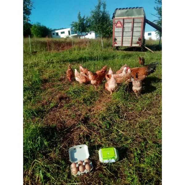 Nous proposons de livrer des oeufs avec les paniers. Il est possible d’en commander chaque semaine via le formulaire.